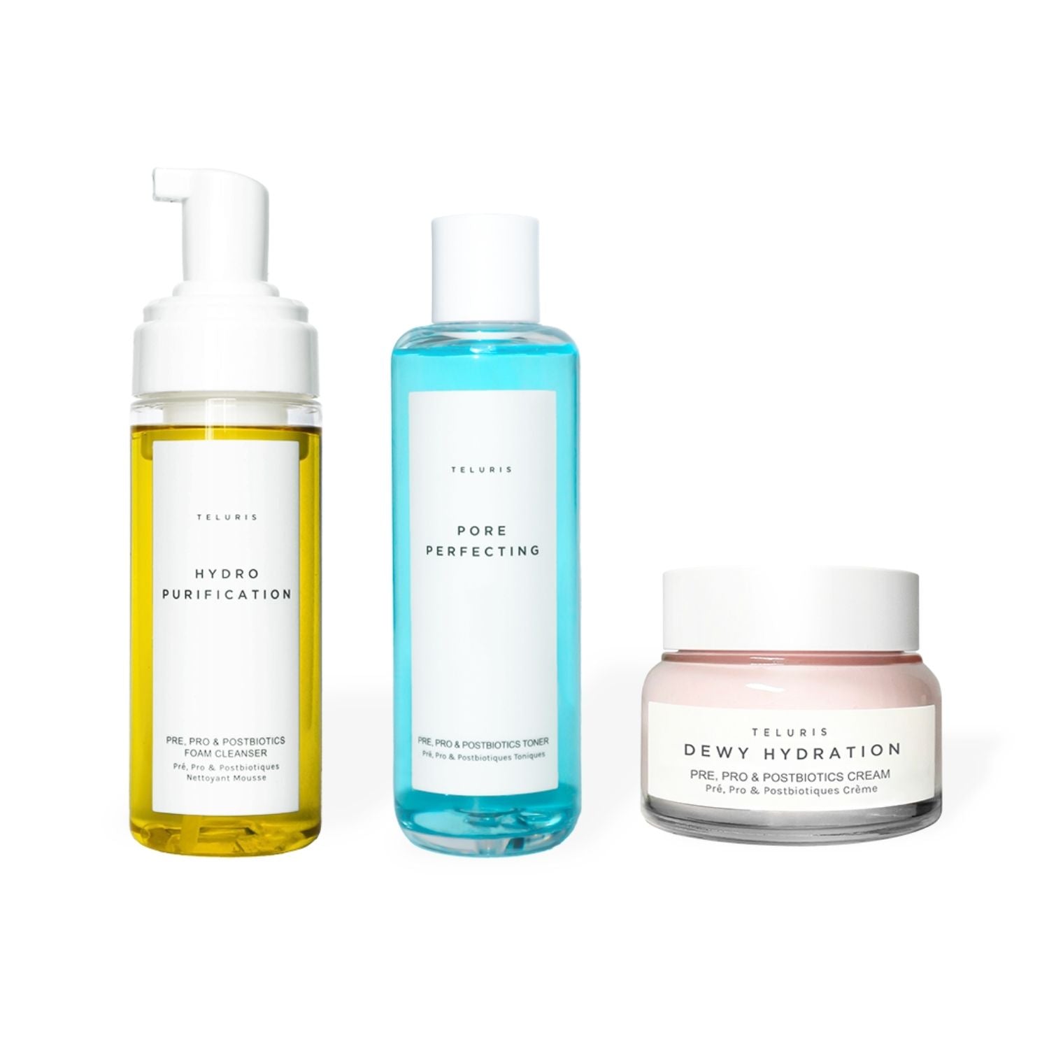 Purify, balance, and hydrate with the Daily Ritual Set. Featuring the Hydro Purification Foam Cleanser, Pore Perfecting Toner, and Dewy Hydration Cream, this microbiome-friendly trio removes impurities, refines pores, and locks in lasting moisture. Powered by prebiotics, probiotics, and postbiotics, it leaves your skin healthy, radiant, and refreshed.