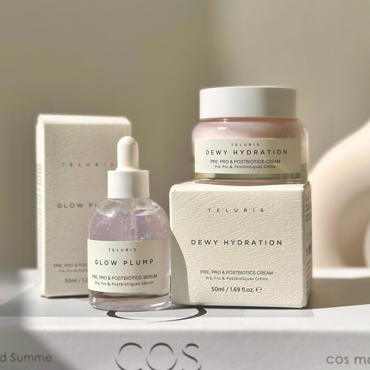 Glow from within with the microbiome-friendly Glass Skin Duo. Infused with prebiotics, probiotics, and postbiotics, this powerhouse pair targets dullness, dehydration, and signs of aging. The Glow Plump Serum visibly smooths fine lines and wrinkles while boosting radiance and elasticity. Follow with the Dewy Hydration Cream to deeply moisturize and strengthen the skin barrier—for a plump, youthful, glass-like glow.